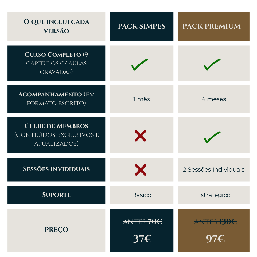 Só te posso dizer que este curso é aquele que eu gostava de ter comparado quando decidi investir no meu conhecimento.